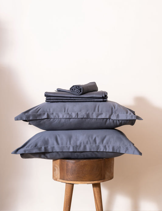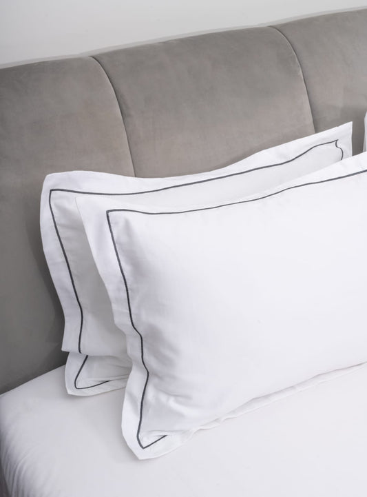 WHITE WITH DARK GRAY EMBROIDERY BEDSHEET SET