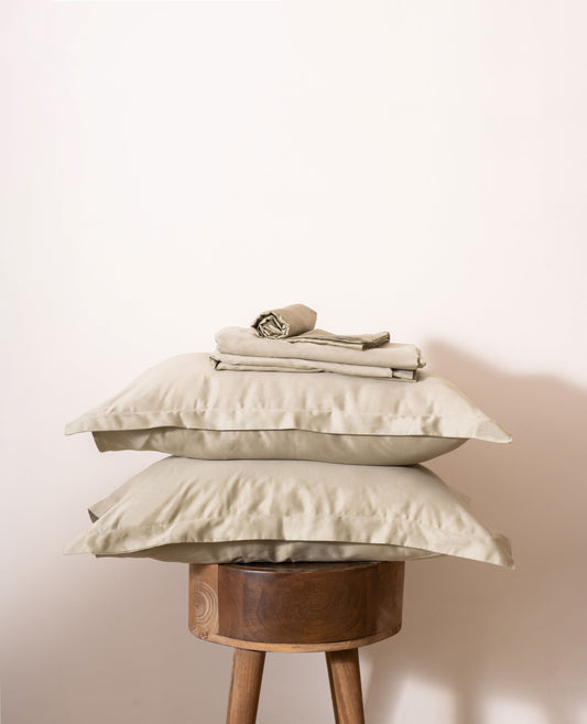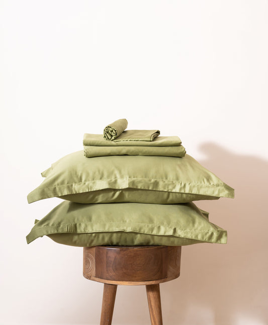 WHITE WITH SAGE GREEN EMBROIDERY BEDSHEET SET