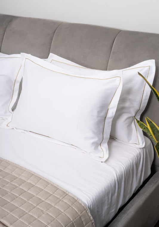 WHITE WITH COFFEE EMBROIDERY BEDSHEET SET