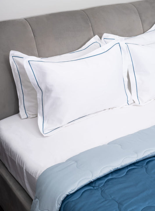 WHITE WITH BLUE EMBROIDERY BEDSHEET SET